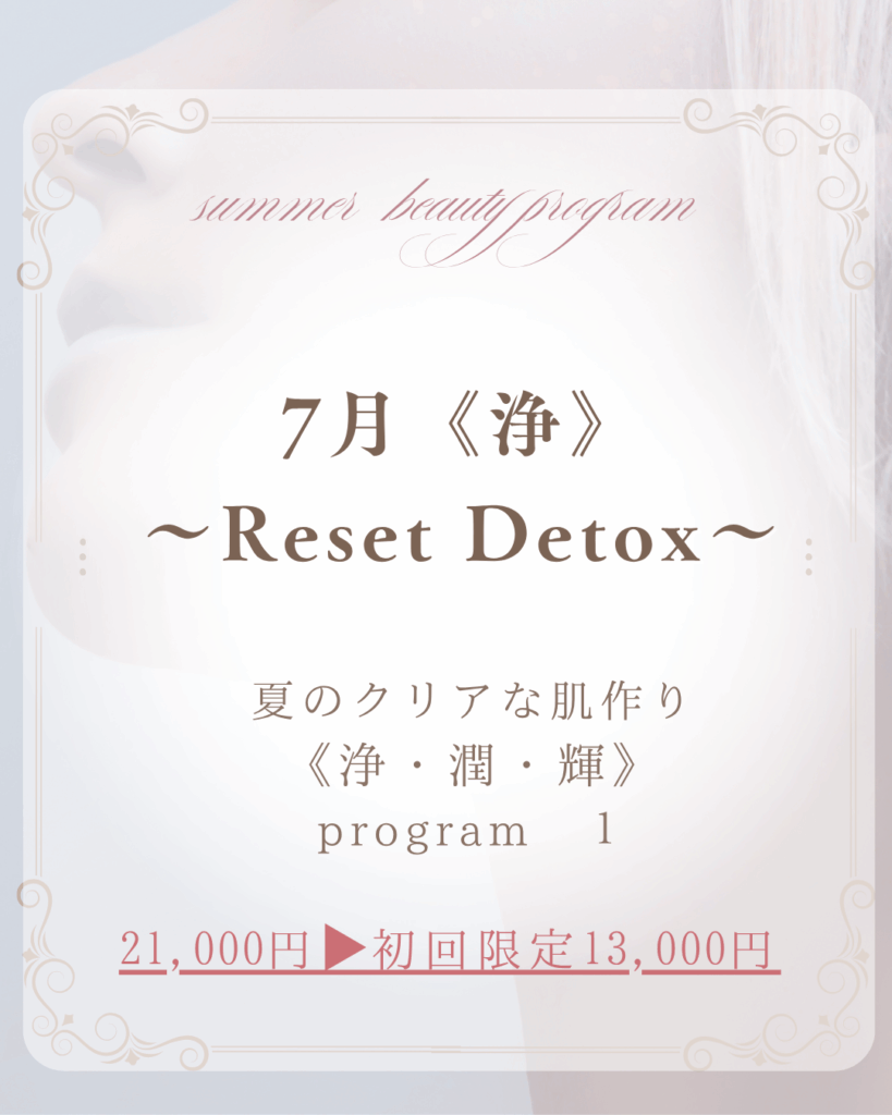 ➤ 7月の限定エステは通常メニューにはない「紫外線に負けない肌」「浴びた紫外線のダメージを労わる」の要素を追加した